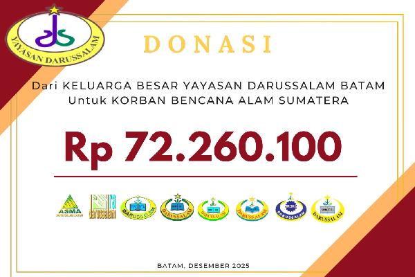 Bantuan untuk Bencana Sumatra dari Yayasan Darussalam Batam melalui BAZNAS, Dinas Pendidikan dan Keluarga Guru yang terdampak. BATAM, 27 Desember 2025 – Kepedulian terhadap sesama kembali ditunjukkan...